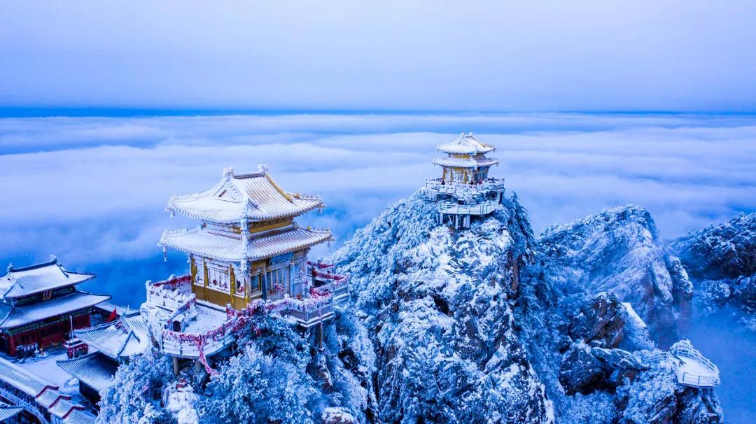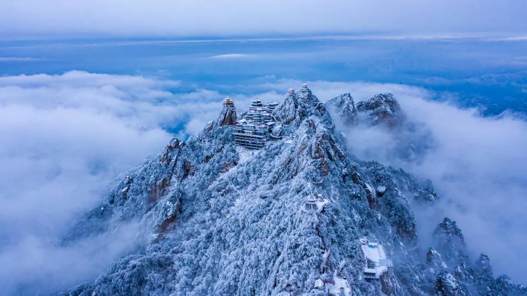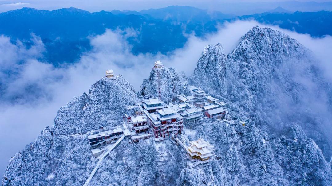 一场雪伴随着氤氲的云雾缭绕在老君山上,