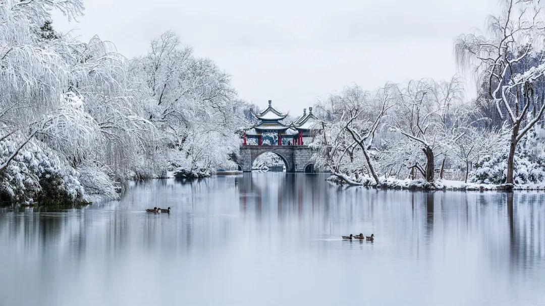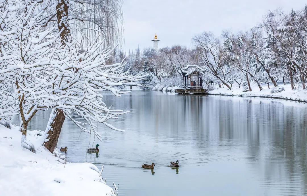 它的雪虽然没有北方那么大,但也足够让瘦西湖银装素裹。