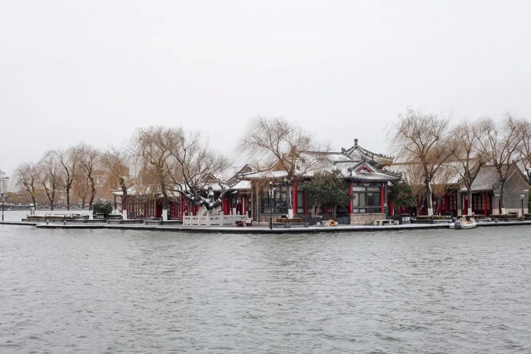 雪中的大明湖一片银装,水气袅袅,云雾一片,宛如仙境。