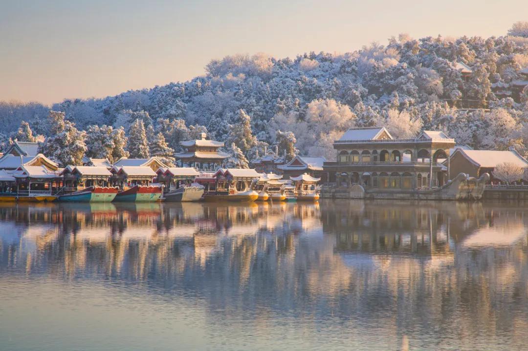 一场雪,更是让园林都变得“真实”,银装素裹点缀着亭台楼阁;