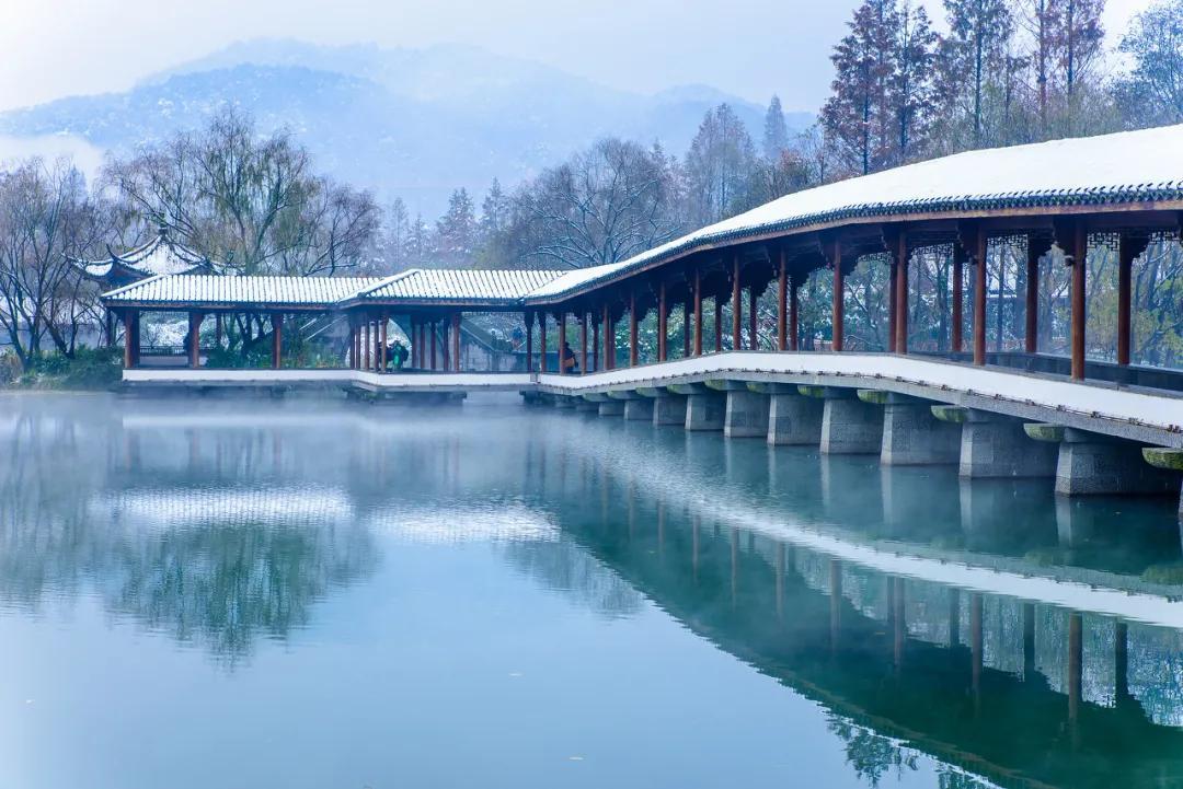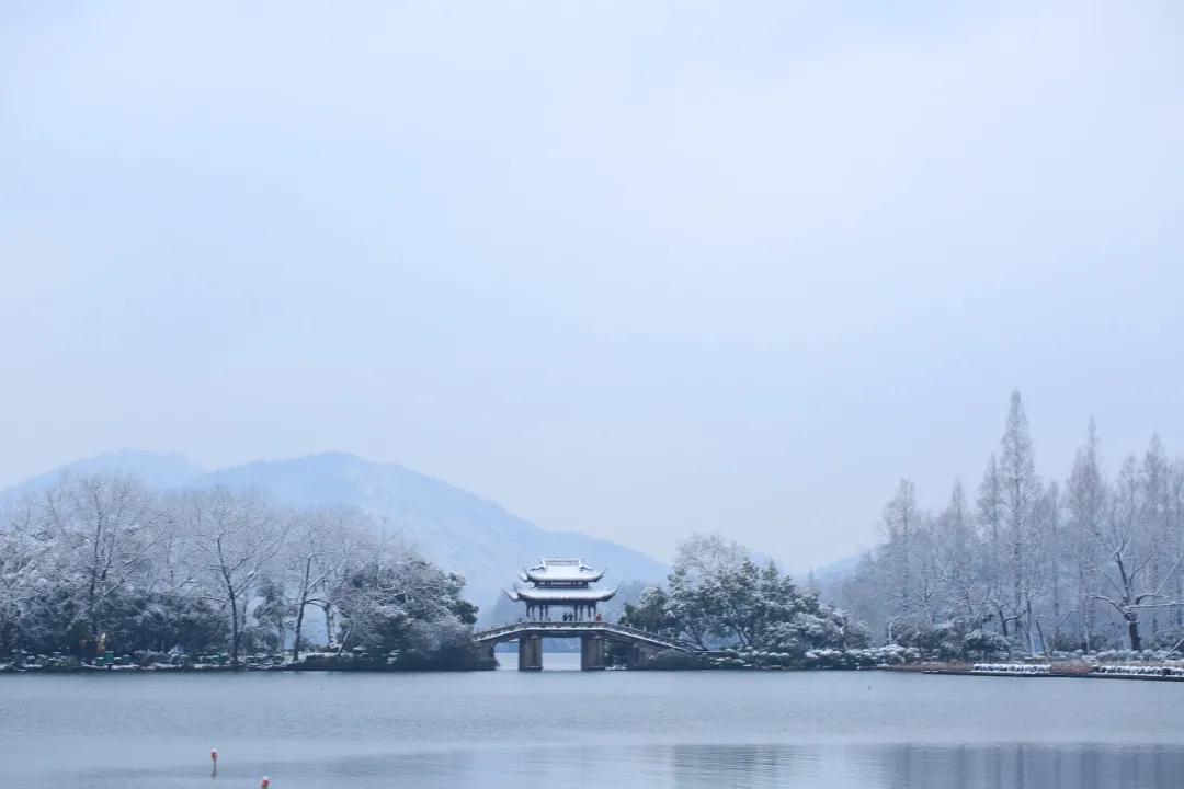 雪落在断桥、落在湖心亭、落在苏堤...把西湖装饰得如同一幅水墨画,