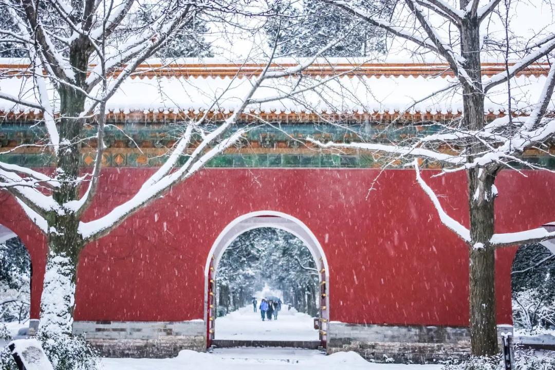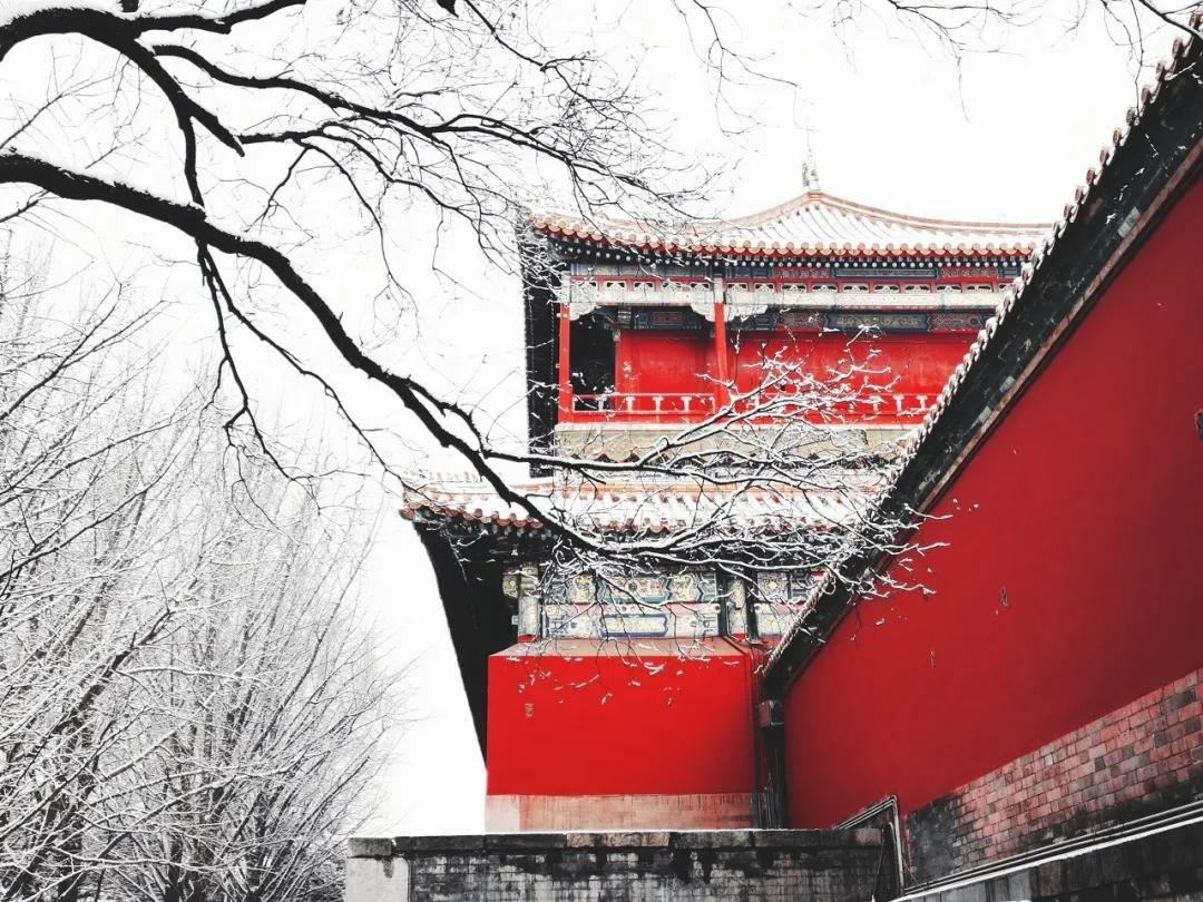 朱红色的城墙依旧将雪映衬的格外洁白。