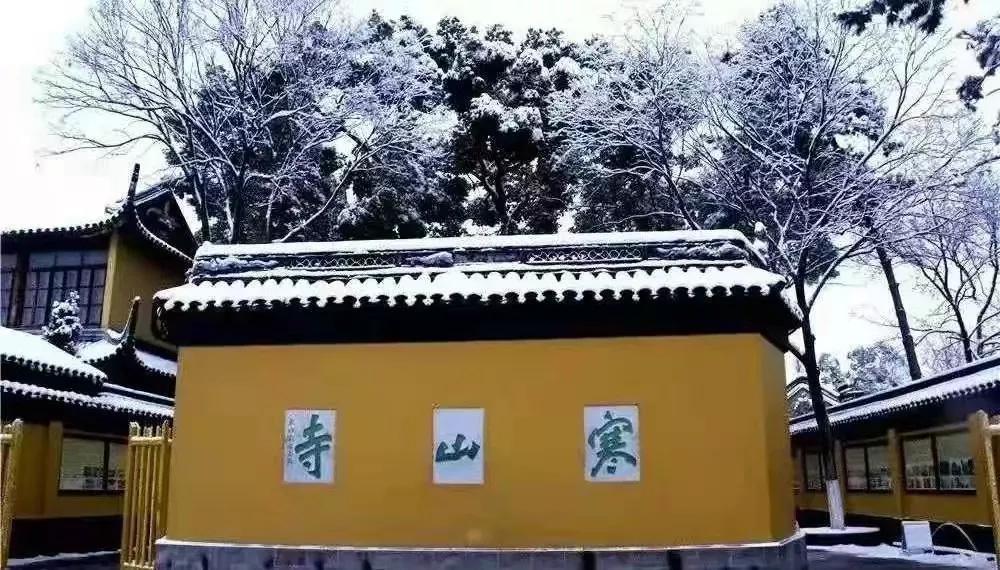 站在枫桥桥头,抬眼看碧瓦黄墙的寺庙掩映在一片雪白之中,