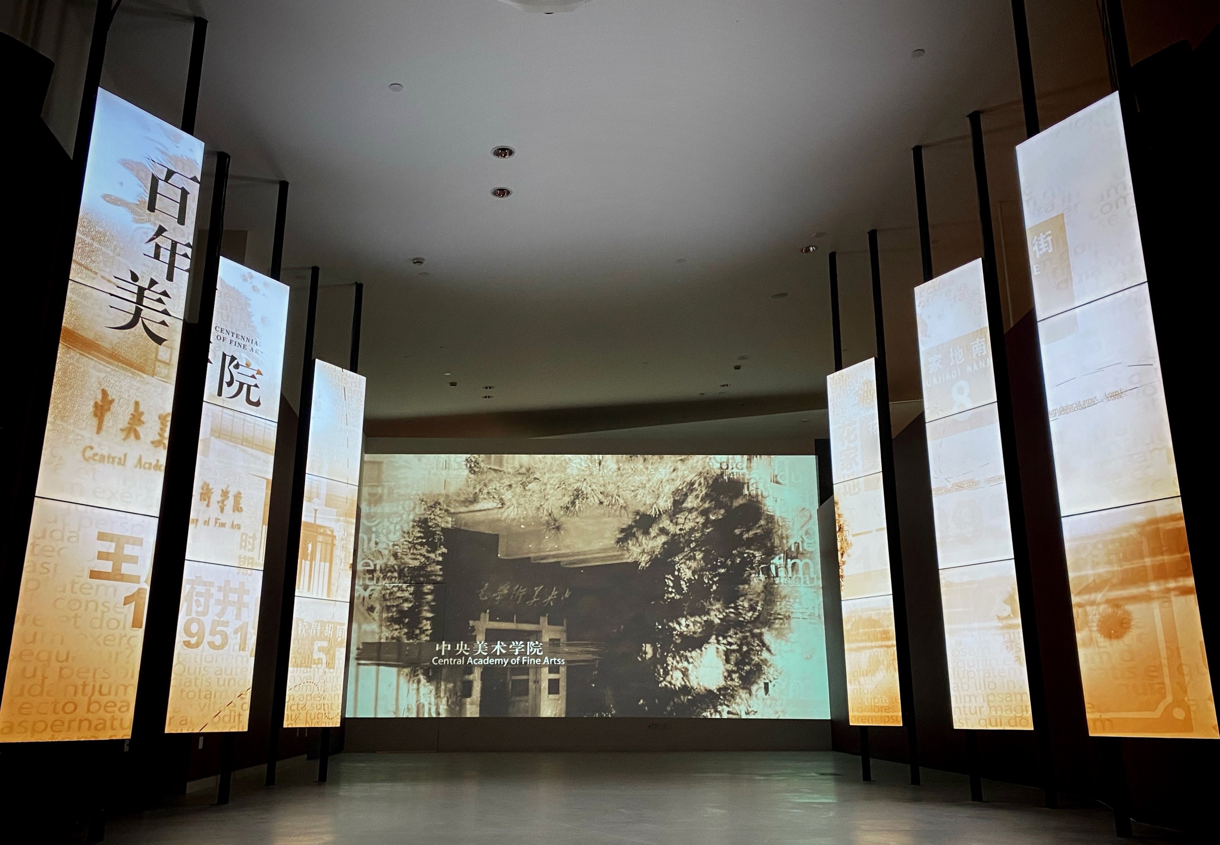 第三篇章以多屏交互融合的方式跨越百年星河,生动地呈现了中法学院作为顺应时代发展的新型创新学院,从筹建、起步以及发展的非凡历程和不忘初心、放眼未来的决心与豪情。正如总策展人、 中央美术学院(中法)艺术与设计管理学院余丁院长所言:“这个展览再现了中国共产党人寻找真理的光明之路,重现着现代中国美术家追求理想的先驱之路。今天的中法学院,汇聚了21世纪的新时代青年……我们要做的,是接过先辈的旗帜,开创智美之路,用艺术改变世界,为民族复兴的伟大事业努力奋斗。”
