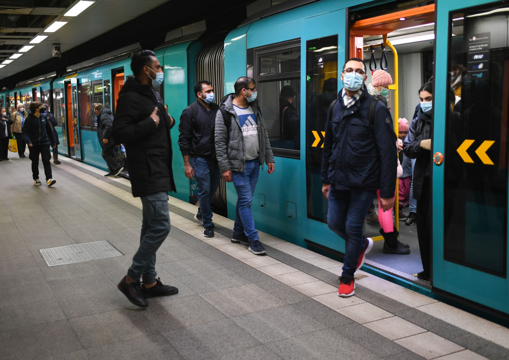 11月10日,人们在德国法兰克福一处地铁站乘车。德国疾控机构罗伯特·科赫研究所10日报告,德国单日新增新冠确诊病例39676例,创下德国暴发疫情以来的最高纪录。(新华社记者逯阳摄)