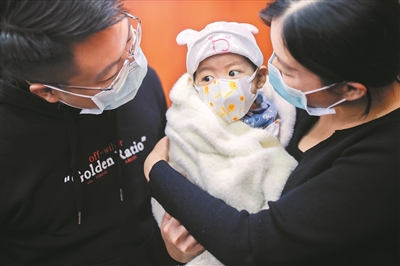 爸爸妈妈看着自己的“小心肝”,眼神里充满爱意。