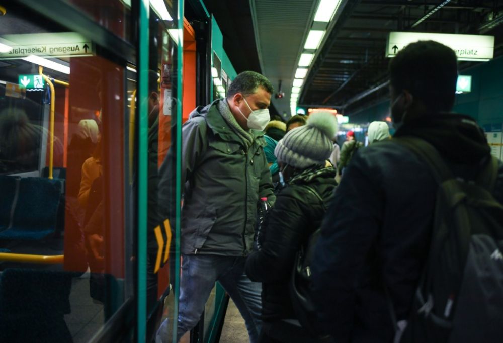 11月10日,人们在德国法兰克福一处地铁站乘车。(新华社记者逯阳摄)