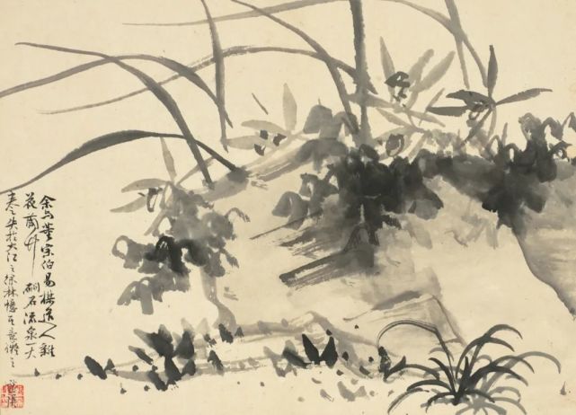 题识:余与董宗伯、易楳道人杂花兰竹、磵石流泉一大卷,失于大江之徐林,忆其意儗之,蓝瑛。