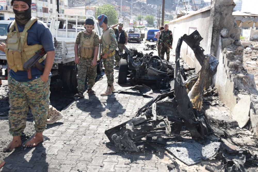 10月31日在也门亚丁拍摄的汽车炸弹袭击现场。(新华社发,穆拉德·阿卜杜摄)