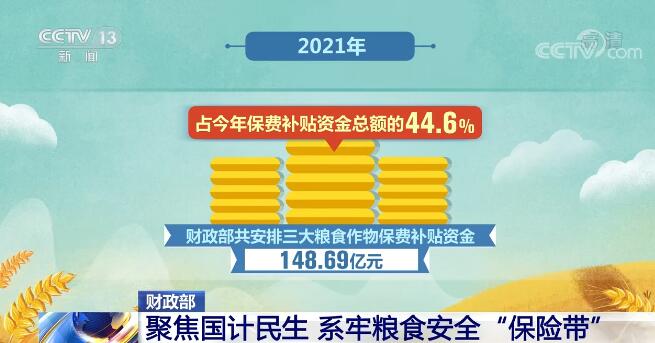 不仅如此,2021年6月,财政部印发政策文件,针对稻谷、小麦、玉米三大粮食作物开展完全成本保险和种植收入保险,在前期6个省(24个产粮大县)试点基础上,逐步扩展至覆盖13个粮食主产省份的全部产粮大县,并提供覆盖农业生产总成本或种植收入的保险保障,进一步推动农业保险扩面提标。2021年共安排三大粮食作物保费补贴资金148.69亿元,占今年保费补贴资金总额的44.6%。