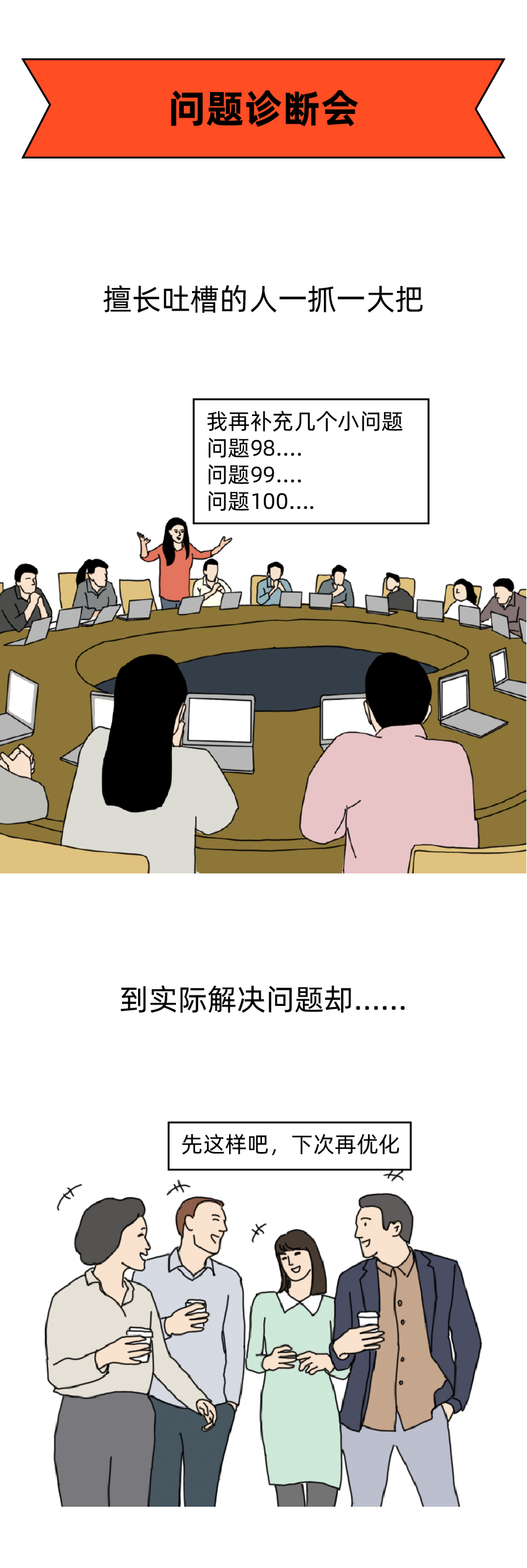所以有产出有价值的会还是值得开的,但是实际情况是我们现在很多的会不仅解决不了问题,有时候反而还会制造问题,没有有用的结论,又浪费了时间,这也是为什么我们这么喜欢吐槽开会。