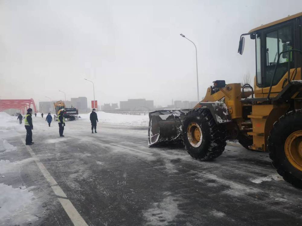 通辽市科尔沁区深夜还在清扫积雪的铲车。(科尔沁区融媒体中心供图)