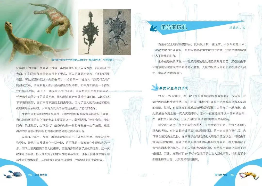 近期,中国科学院戎嘉余院士和周忠和院士主编的《演化的力量》出版,该书从古生物学家的视角出发,用通俗的语言和风趣的案例,图文并茂地对生物进化进行了多方位的诠释,可谓是时节好雨,相信会有助于匡谬扶正,滋润万千心田,启迪新时代青少年。