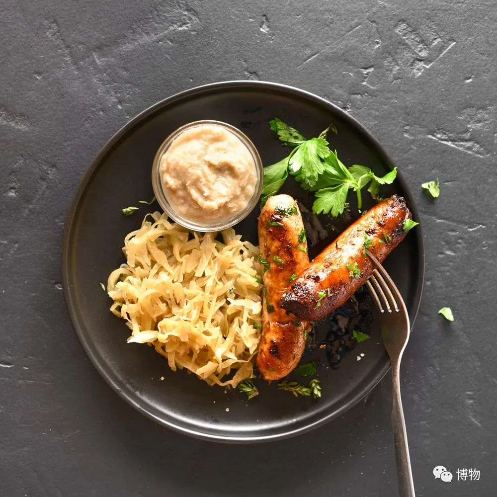 欧洲酸菜用的却不是大白菜,而是卷心菜,切丝后用盐腌制,同样是靠乳酸菌发酵。不同的国家,还会在腌酸菜时加不同的调味品,如德国喜欢加杜松子、莳萝等香料,俄罗斯则会加苹果、蔓越莓等酸甜的水果。欧洲人吃这类酸菜,也是或搭配肉食、或做炖菜,对东北人民来说颇为亲切。