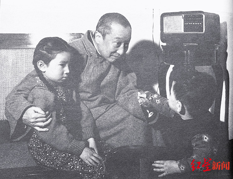 1957年,李劼人同孙辈在菱窠家中。(左为李诗华)