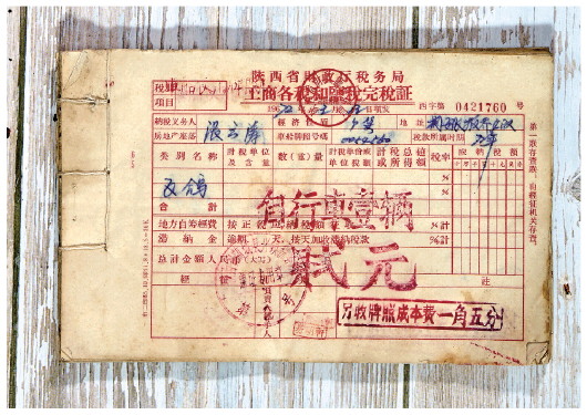 经济腾飞、时代巨变之下,一些历经千年的传统税种也逐渐消失在历史长河中。蒲城“兴镇‘税’月展览室”存有1955年的临商税票、1960年的屠宰税票、1972年面向自行车征收的车船使用牌照税票和1973年的农业税票。这五个税种先后停征,已完成各自的历史使命。