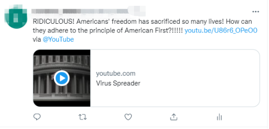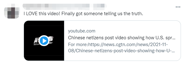 译文:这个视频太棒了,干得漂亮!美国甩锅中国的阴谋不会得逞,没人会相信的!