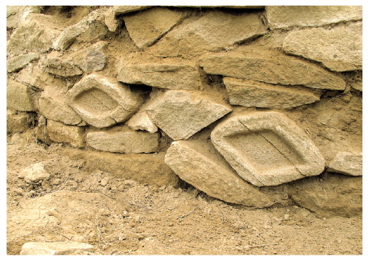石峁古城的墙体发现的菱形石雕眼纹(2015年9月8日摄)。新华社记者冯国摄