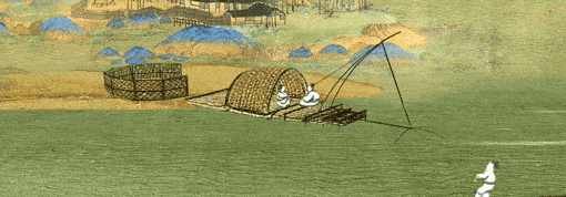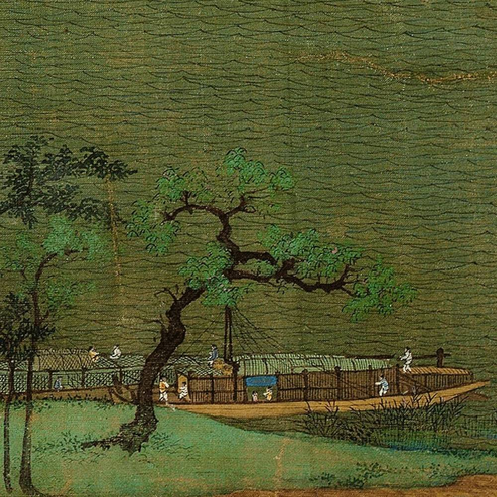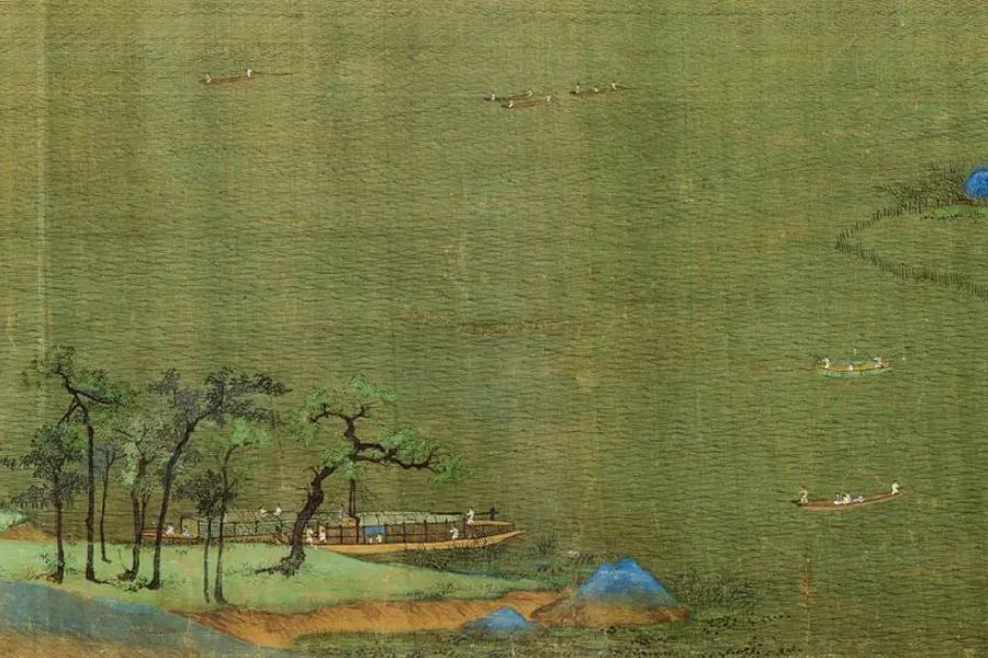 画中有许多值得玩味的细节,这些必然是画家本人见过的,或生活中的,才能细微画出一个船夫收蒿的力怎么发,动作倾斜又该几度。