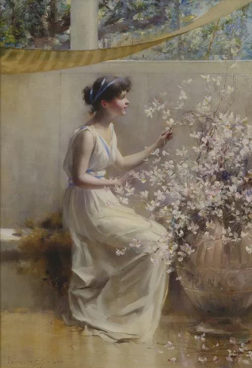 弗朗西斯·科茨·琼斯是美国画家,生于1857年。他出生于一个富裕的家庭。从小就对绘画产生浓厚的兴趣,但他真正的画家职业生涯是从到英国旅行之后才开始的。他的作品风格受印象派的影响比较深,画面清新自然、温馨浪漫且意境悠远,让人看着很舒服!