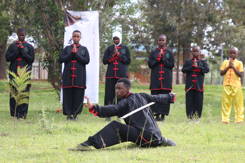 11月10日,螳螂拳武术俱乐部成员在卢旺达卡永扎进行武术表演。(新华社记者吉莉摄)
