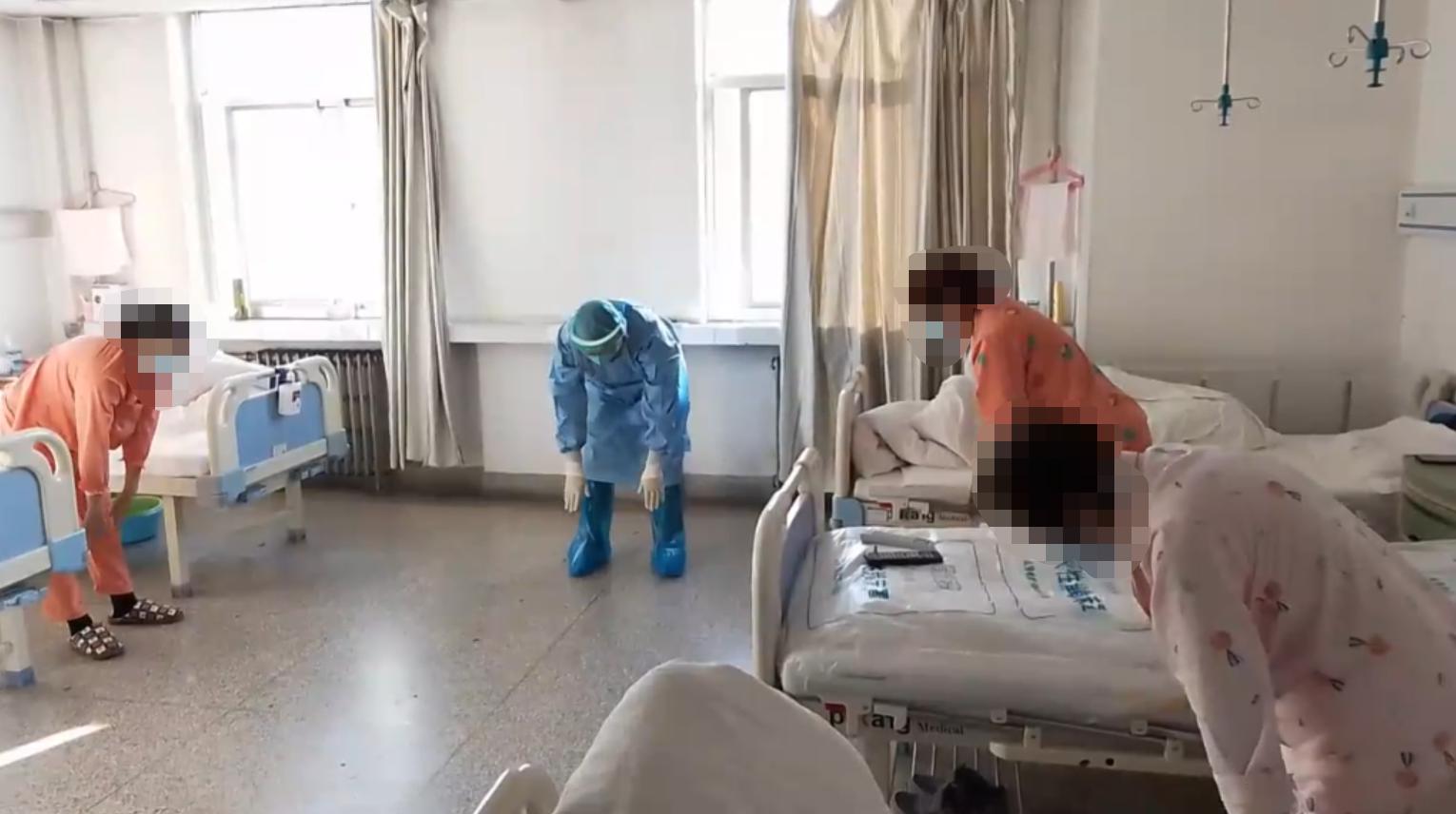 医护人员带治愈出院病例坐康复操