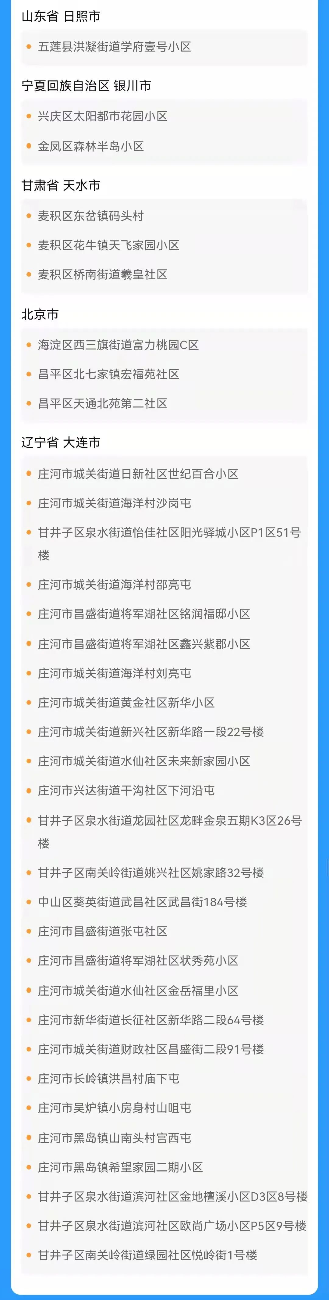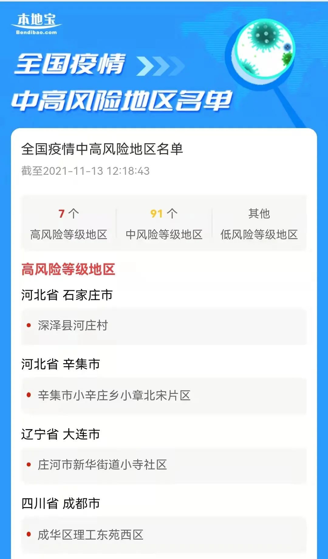 11月12日0—24时,31个省(自治区、直辖市)和新疆生产建设兵团报告新增本土确诊病例57例、本土无症状感染者18例。目前已有甘肃、内蒙古、陕西、青海、四川、湖北、湖南、贵州、黑龙江、江西、宁夏、河北、北京、云南、山东、重庆、江苏、河南、浙江等多个省份报告阳性病例。本次疫情呈现传播链条多、传播速度快、传播范围广的特点,“外防输入、内防反弹”的防控形势依然严峻复杂。截至13日12时,我国有7个高风险地区和91个中风险地区。
