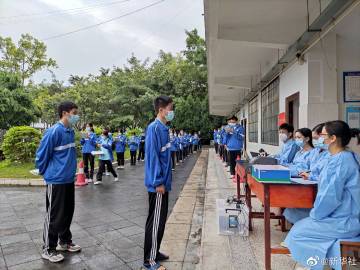 【#云南瑞丽学生边看书边排队测核酸#】云南省瑞丽市政府13日发布消息,瑞丽结合疫情形势和学校条件,通过封闭管理复学、智慧课堂建设、个性化复学等举措,有序、安全、分步推进复学工作,目前已有8所学校5200名学生实现复学。13日上午,瑞丽市第一民族中学组织学生进行核酸检测,记者在校园里看到,高三学生统一佩戴口罩,边看书边有序排队做核酸检测。(记者林碧锋)