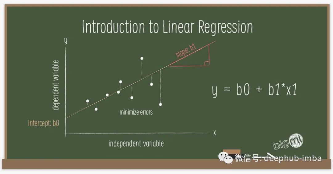 它是一种数学方法,可以将一条线与基础数据拟合。它假设输出和输入之间存在线性关系。输入称为特征或解释变量,输出称为目标或因变量。输出变量必须是连续的。例如,价格、速度、距离和温度。以下等式在数学上表示线性回归模型: