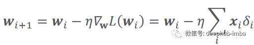 计算误差的函数又被称作损失函数,它可以有不同的公式。i 是数据样本数,y 是预测输出,t 是真实目标。根据以下等式中给出的梯度下降规则更新参数: