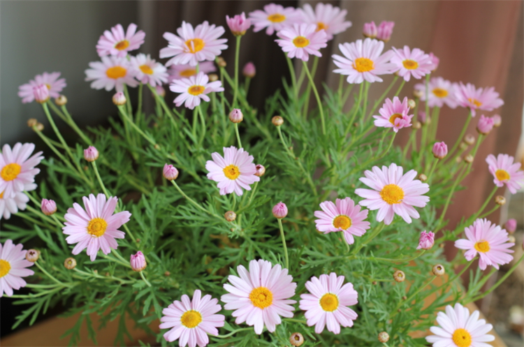 玛格丽特是一种非常清新秀气的小菊花类盆栽,而且相比这类型小植物盆栽来讲,玛格丽特还是一种多年生草本植物,每一年都可以养开花,而且要多食用一些灵甲费,可以促进它的开花量哦!