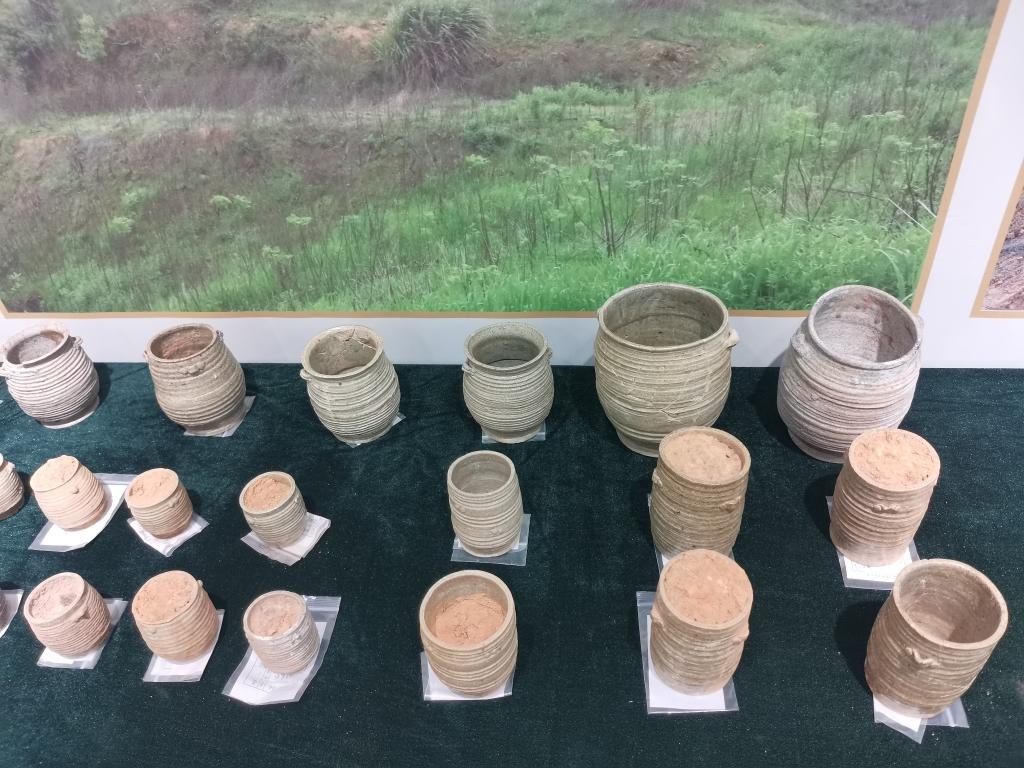 孟姜三号墓出土的部分原始瓷器。新华社记者冯源 摄