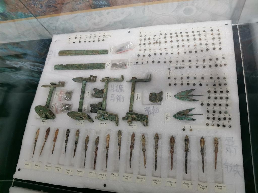 在庙山尖土墩墓中出土的部分青铜车马器。新华社记者冯源 摄