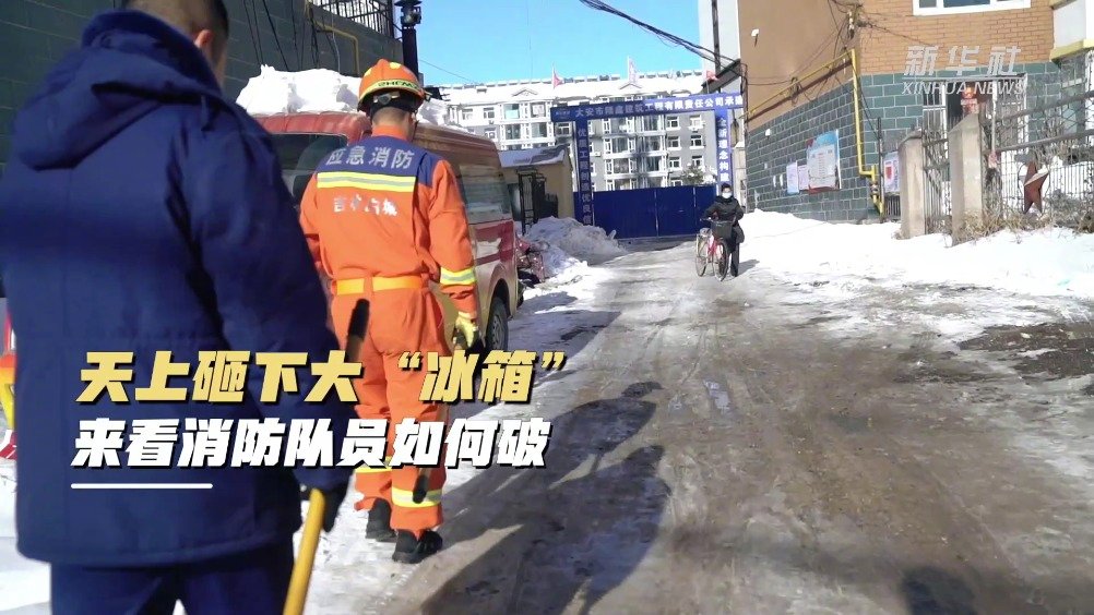 【天上砸下大“冰箱”,#看消防员硬核处置楼顶积雪#】日前,吉林省白城市遭遇强暴风雪天气,其中大安市降雪量最大。暴雪过后,楼顶厚厚的积雪和悬冰威胁着居民和行人安全。大安市消防救援大队消防员自制“兵器”,出动车辆80余次,指战员320名,为30余小区除冰排险。消防部门提醒,雪后出行尽量与楼体保持一定距离,防范“头顶风险”。(记者李双溪、王帆) 新华社的微博视频