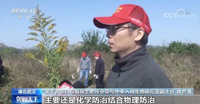 湖北省农科院植保土肥所杂草与外来入侵生物研究室副主任 褚世海:我们目前最好的方法主要还是化学防治结合物理防治,通过人力、机械铲除。一个方面是地面上花序的部分,我们不让它的种子成熟,另外我们要通过机械把下面的根挖出来进行销毁。