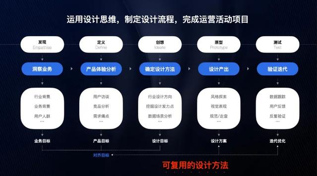 设计师需要发挥专业的设计能力,辅助业务实现增长转化。始终以“业务目的”为设计的最终目标,辅以设计方法论指导整个设计过程,最终做到:设计和业务相互赋能,从而形成外部影响,最终达成业务目的,促成行业影响。