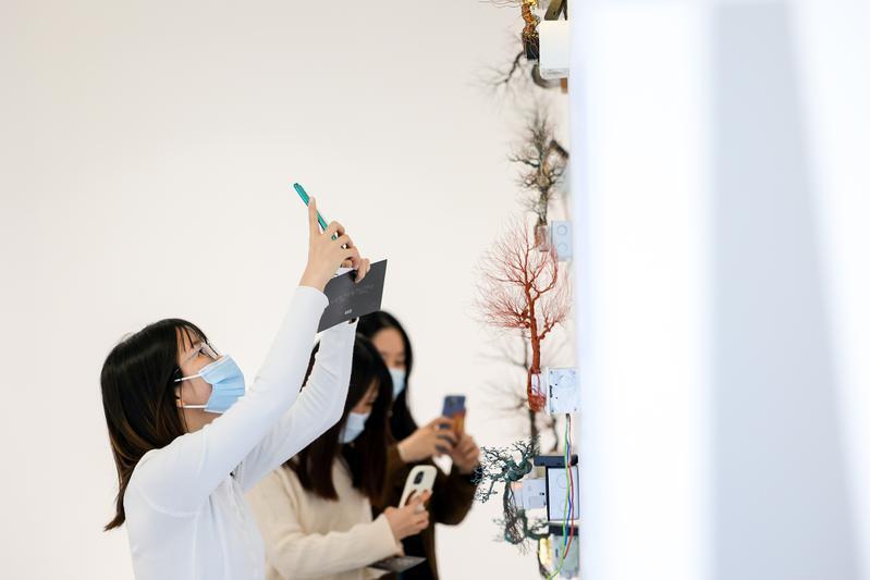 参展艺术家 林佑森 Lam Yau Sum,毕业于墨尔本皇家理工大学艺术系,同年获得「出炉2010」的「杰出艺术新秀奖」。作品曾于中国及海外多个展览展示,包括香港巴塞尔艺术展、典亚艺博、水墨艺博、台北国际艺术博览会、迈阿密亚洲艺术博览会等。其作品被私人藏家及公共机构收藏,包括香港艺术馆、希腊Copelouzos Family博物馆、泰国清迈当代艺术博物馆等。2015年,其系列作品《圆》、《树塔》、《铁树》参与CHINA 8,在德国哈根奥斯特豪斯博物馆展出。此次作品收集废旧的电子产品零件,通过重新组合、上色,打造出独特的风景与回忆。