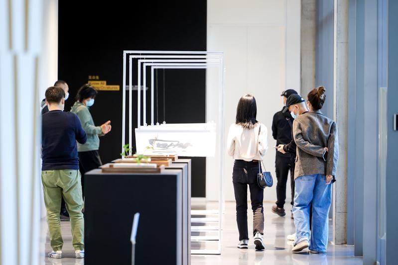 展览的第一部分「见自己」,以书法及文字设计分享创作者心境;第二部分「见天地」,透过错视作品、坐禅椅及立体装置呈现;最后在「见众生」的部分,作品结合书法及多种混合媒介表达感悟,在命运的抉择之中,一切也是因缘际会。