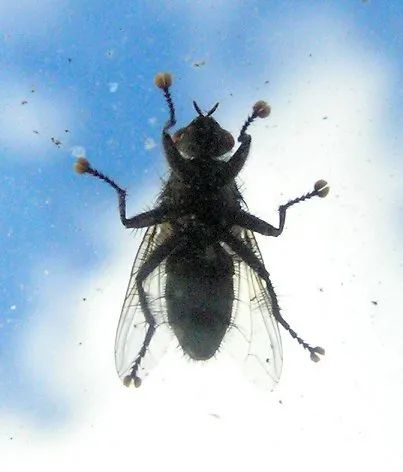 不论是谁都不会怀疑苍蝇能“上树”的技能点长在了它们的脚脚上。研究者们对苍蝇脚脚的技能也提出了各种解释,比如苍蝇脚脚的抓力特别好、脚脚上有静电等等。