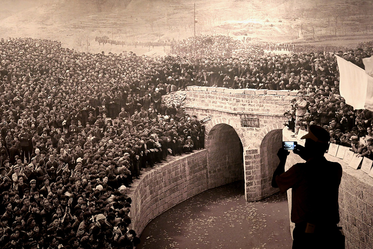 “劈开太行山,漳河穿山来。林县人民多壮志,誓把河山重安排……”