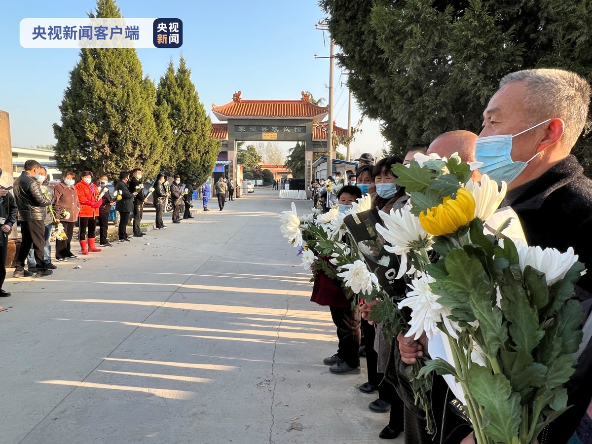 今天早上7时不到,总台记者在现场看到,很多群众就自发来到蒙城县殡仪馆的门口,大家手持鲜花,守候在通往殡仪馆的道路两旁。送别的鲜花上,大家用卡片写着“英雄,一路走好”等,寄托对牺牲消防员的哀思。