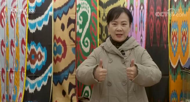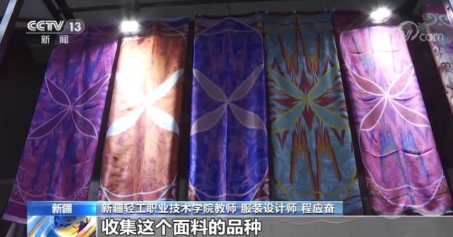 新疆轻工职业技术学院教师 服装设计师 程应奋:和田和喀什地区是丝绸之路的一个重镇,那么它是一个东西方文明交汇的一个地方,众多的文化影响到了它的这个图案的特点,它就是我们中华传统文化的一部分。我们一方面是文化自信,一方面如果还能够通过这个面料解决民生,让这些老百姓、几万人的老百姓能生活得好,你说它多有意义呀。