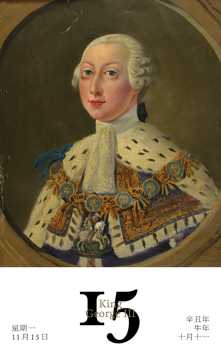 这幅彩色半身像描绘的是英国国王乔治三世,创作于18世纪末。