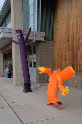 一旦找对了舞蹈节奏,来一段齐舞对充气人偶来说也不是什么难事。
