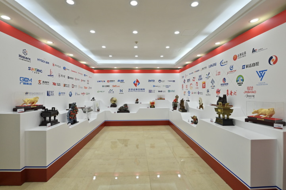 北京证券交易所首批上市的81家企业标识展示墙。新华社记者 李鑫 摄