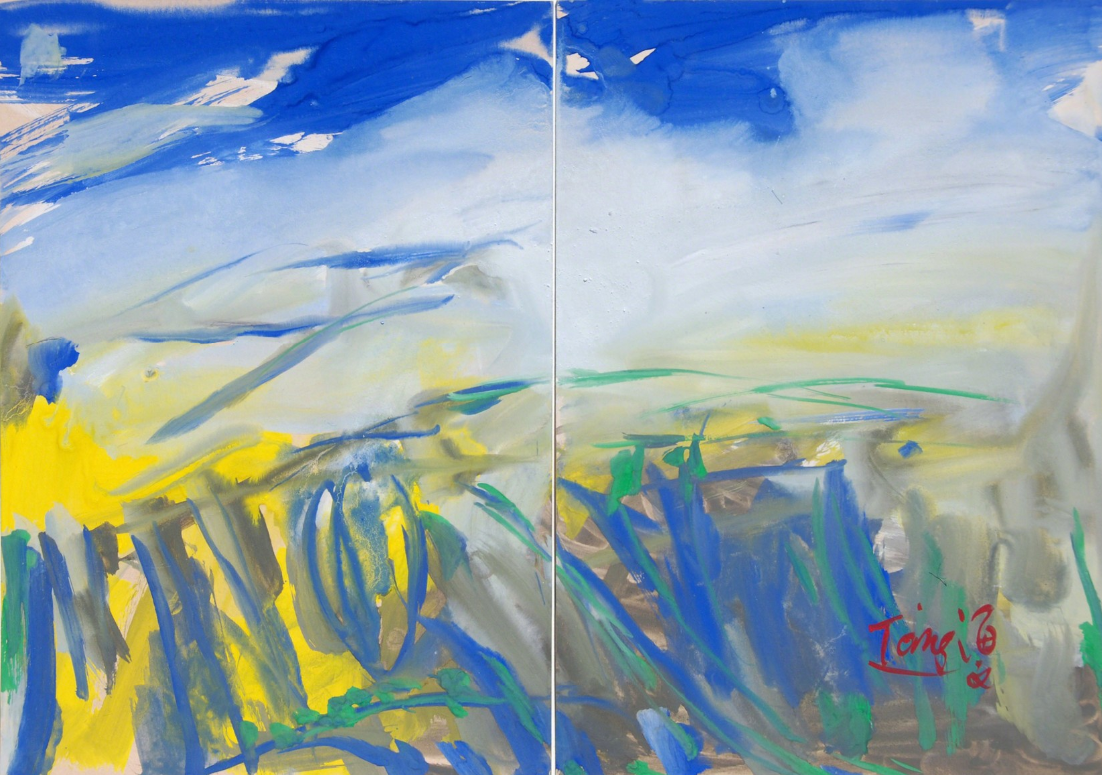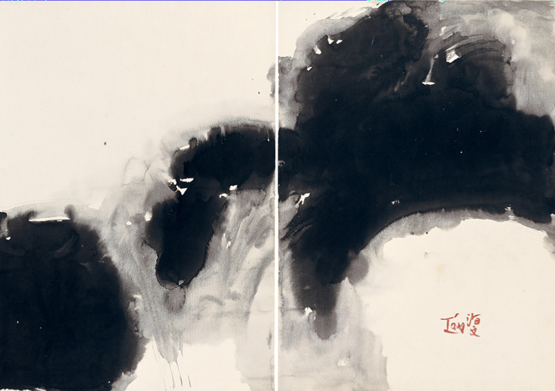 无题(双联),约1985年,纸本水墨,27 3/5×39 2/5英寸,70×100厘米。
