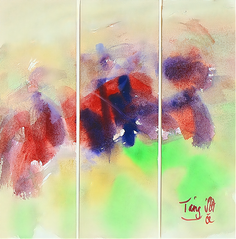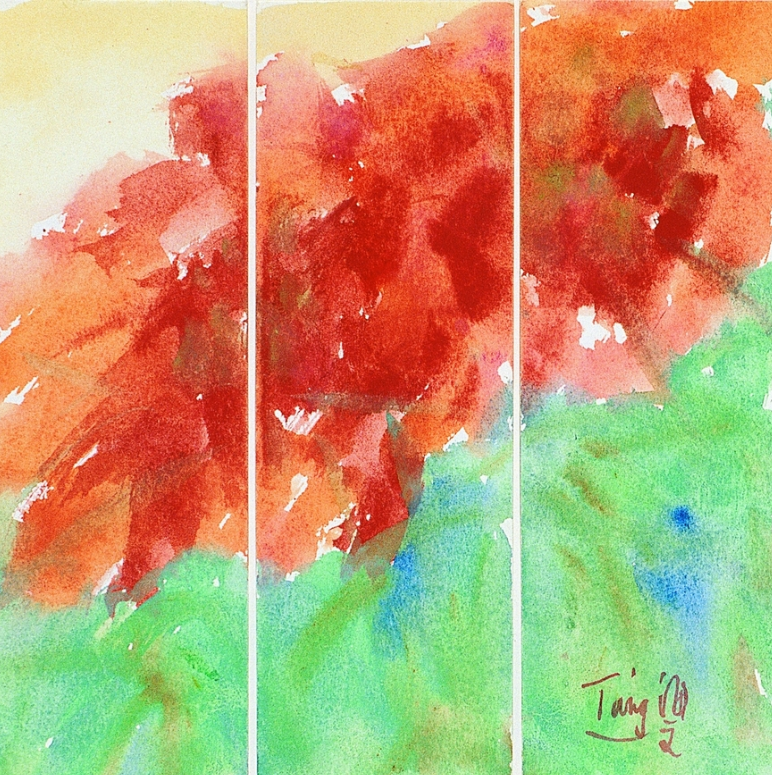 无题5号,三联,约20世纪80年代,纸上的水彩画,7 3/10×7 3/10英寸,18.5×18.5厘米。