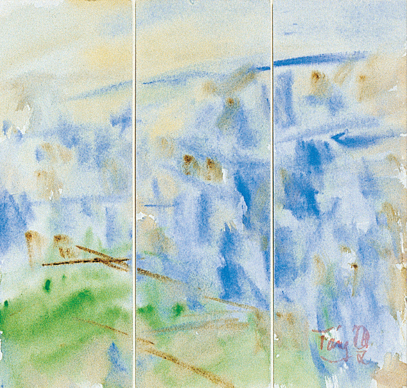 无题12号,三联画,约20世纪80年代,纸上的水彩画,6 7/10×7 1/10英寸,17×18厘米。