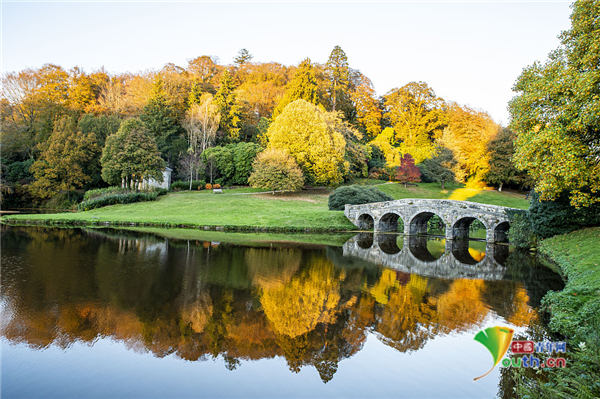 当地时间2021年11月4日,英国威尔特郡,秋天到来,英国最美园林斯托海德风景园里秋色动人,美成油画。