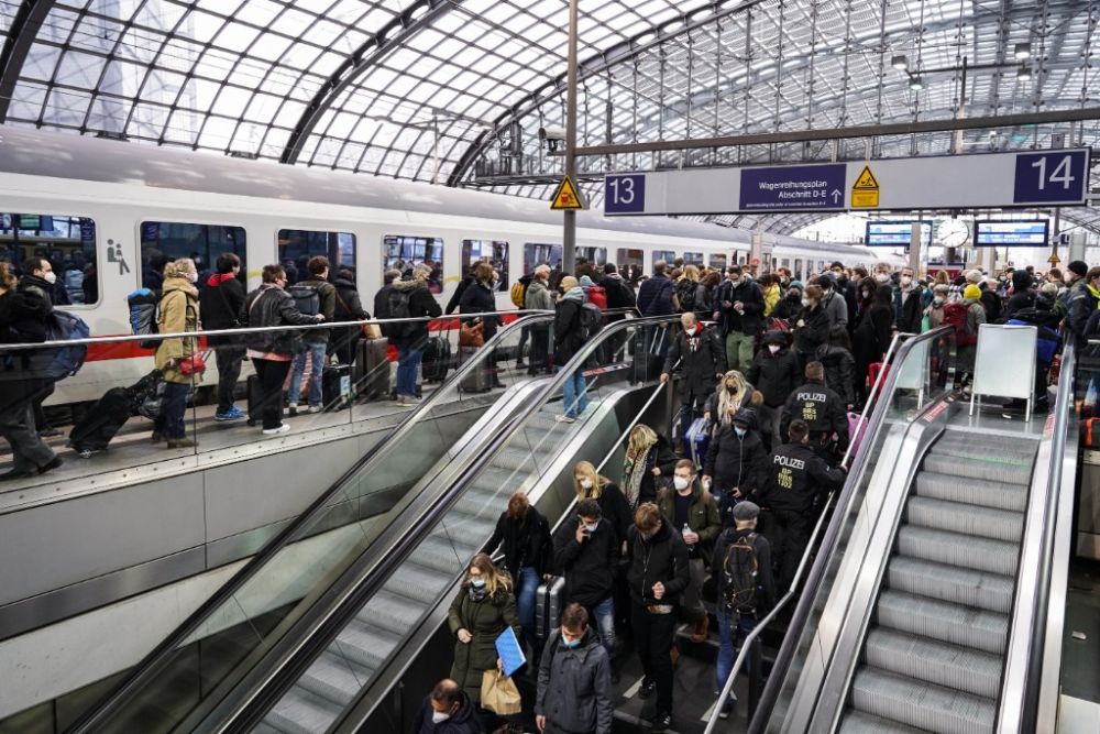 11月5日,乘客离开德国首都柏林的主火车站站台。新华社发(斯特凡·蔡茨摄)